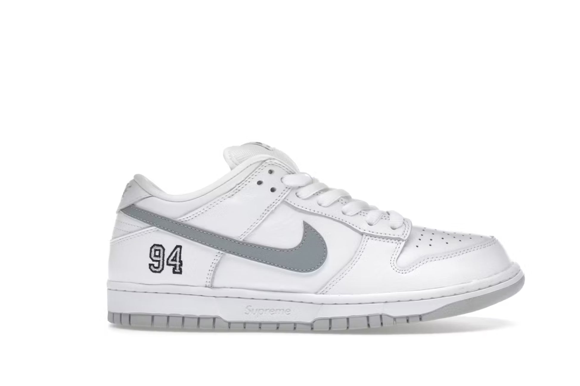 Nike SB Dunk Low Supreme 94 White Metallic Silver